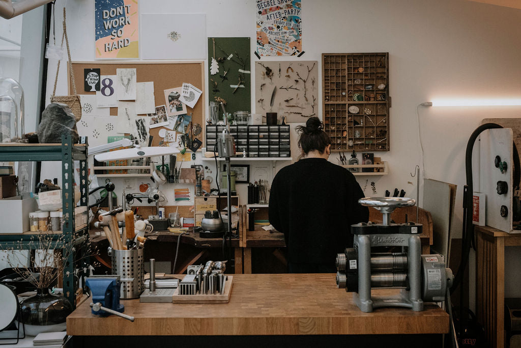 The Studio is located in the historic Briggait building in Glasgow city centre. Jane welcomes you by appointment to discuss bespoke and made to order designs.