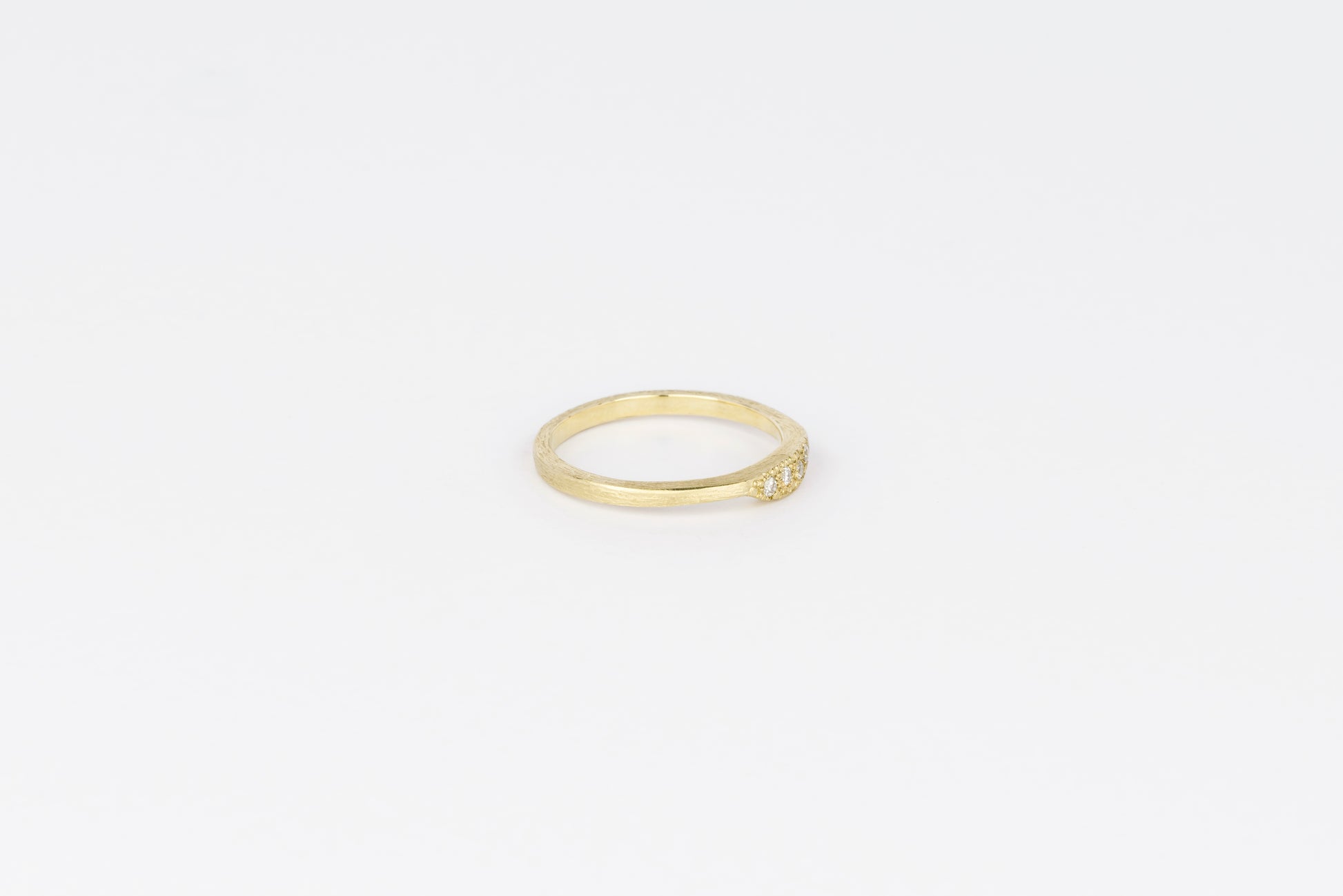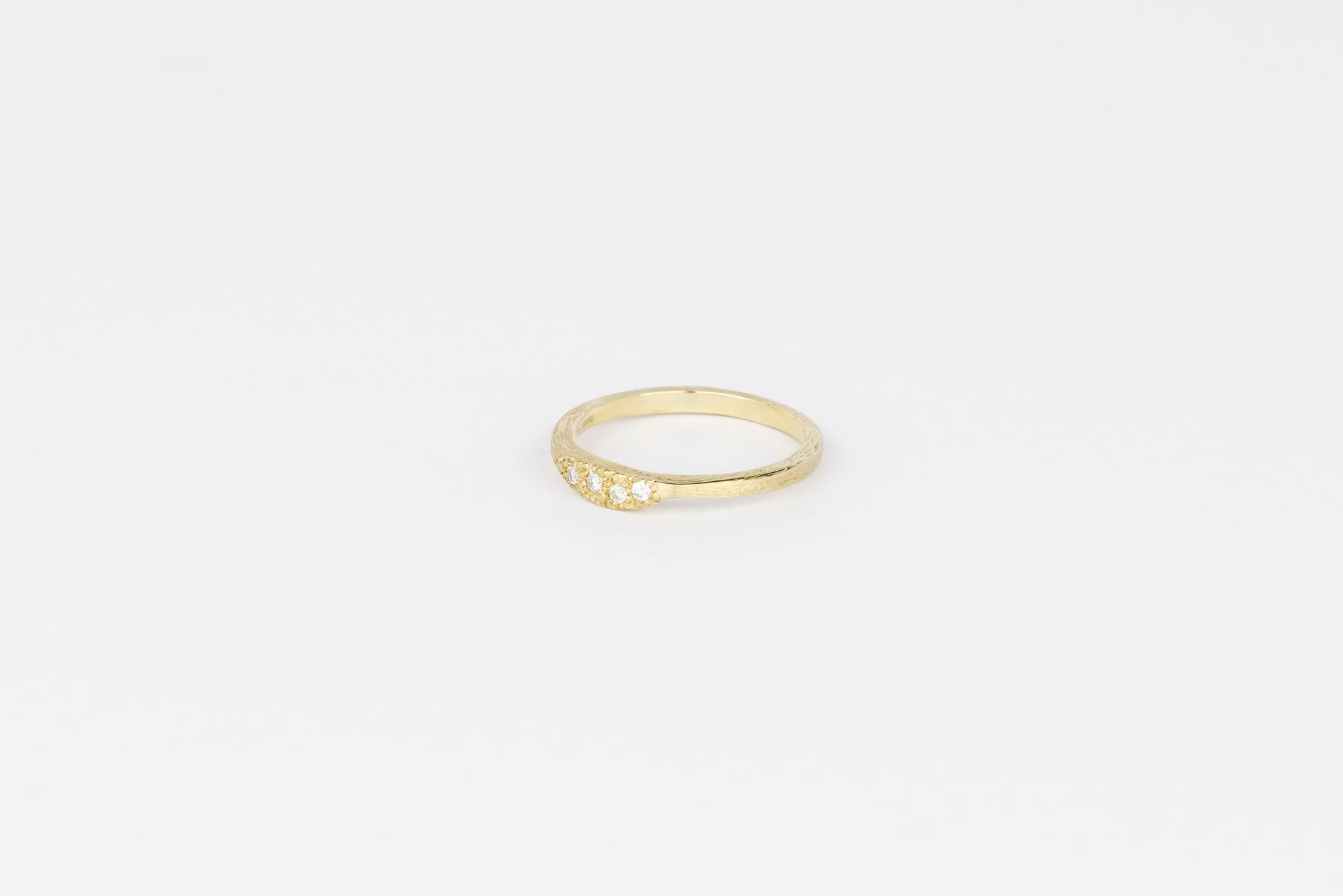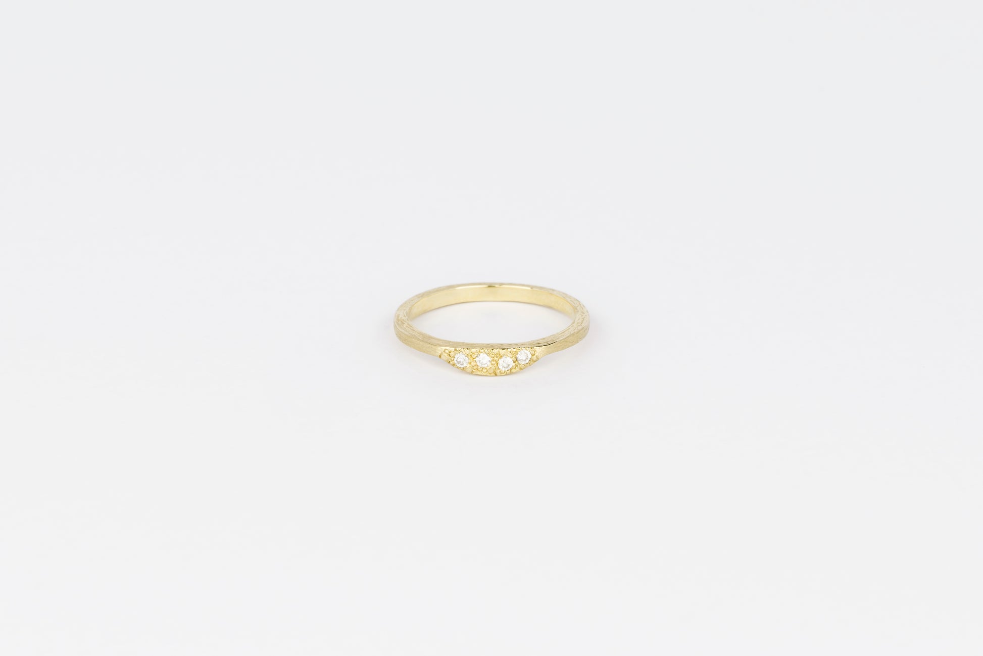 Beautifully intricate the Acclaim ring is a celebration of textures in nature and makes for a beautiful contemporary wedding ring. Made by hand with an organic finish it is set with 4 round brilliant diamonds.