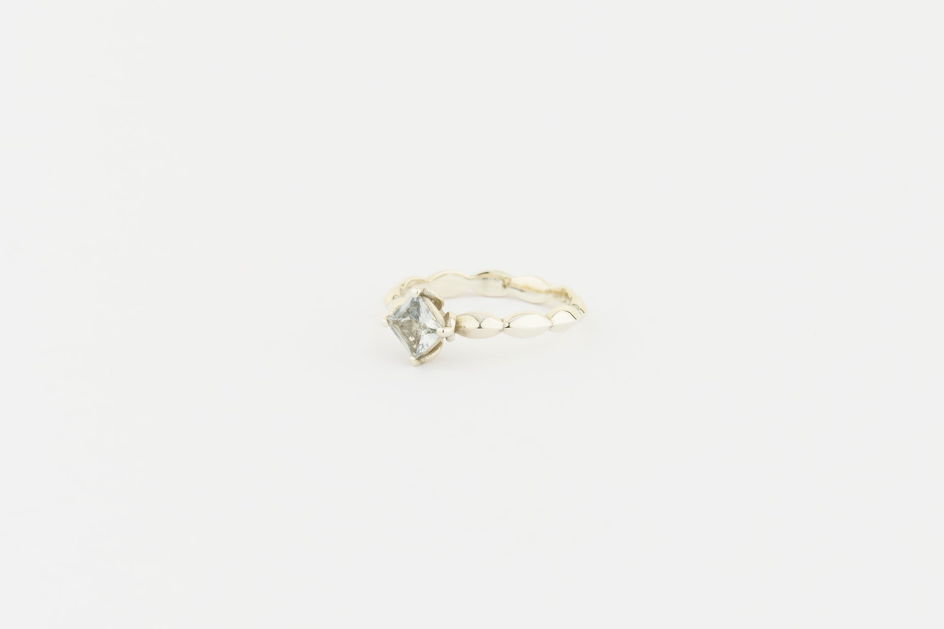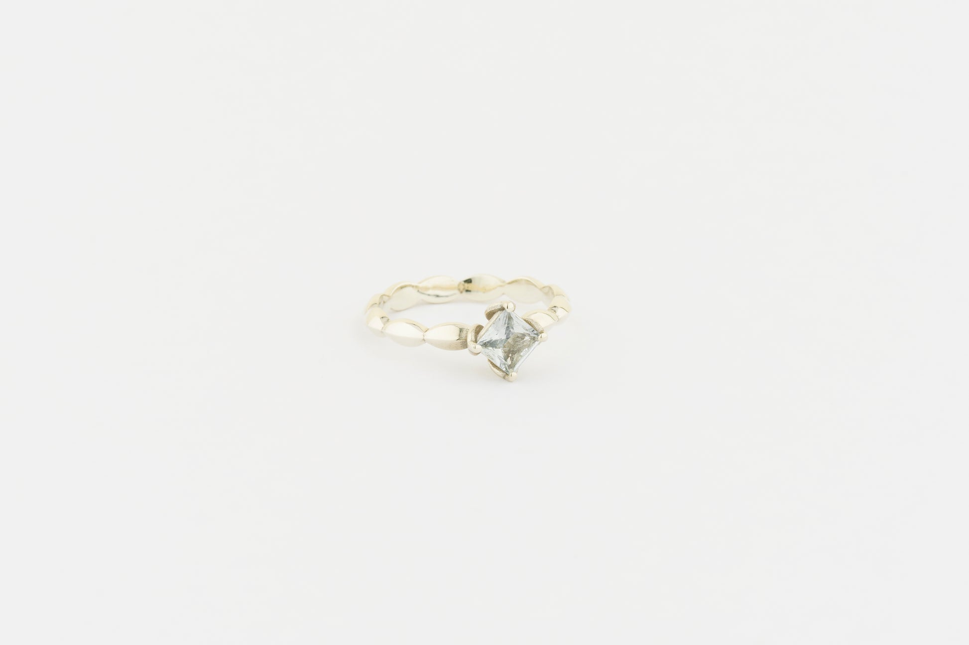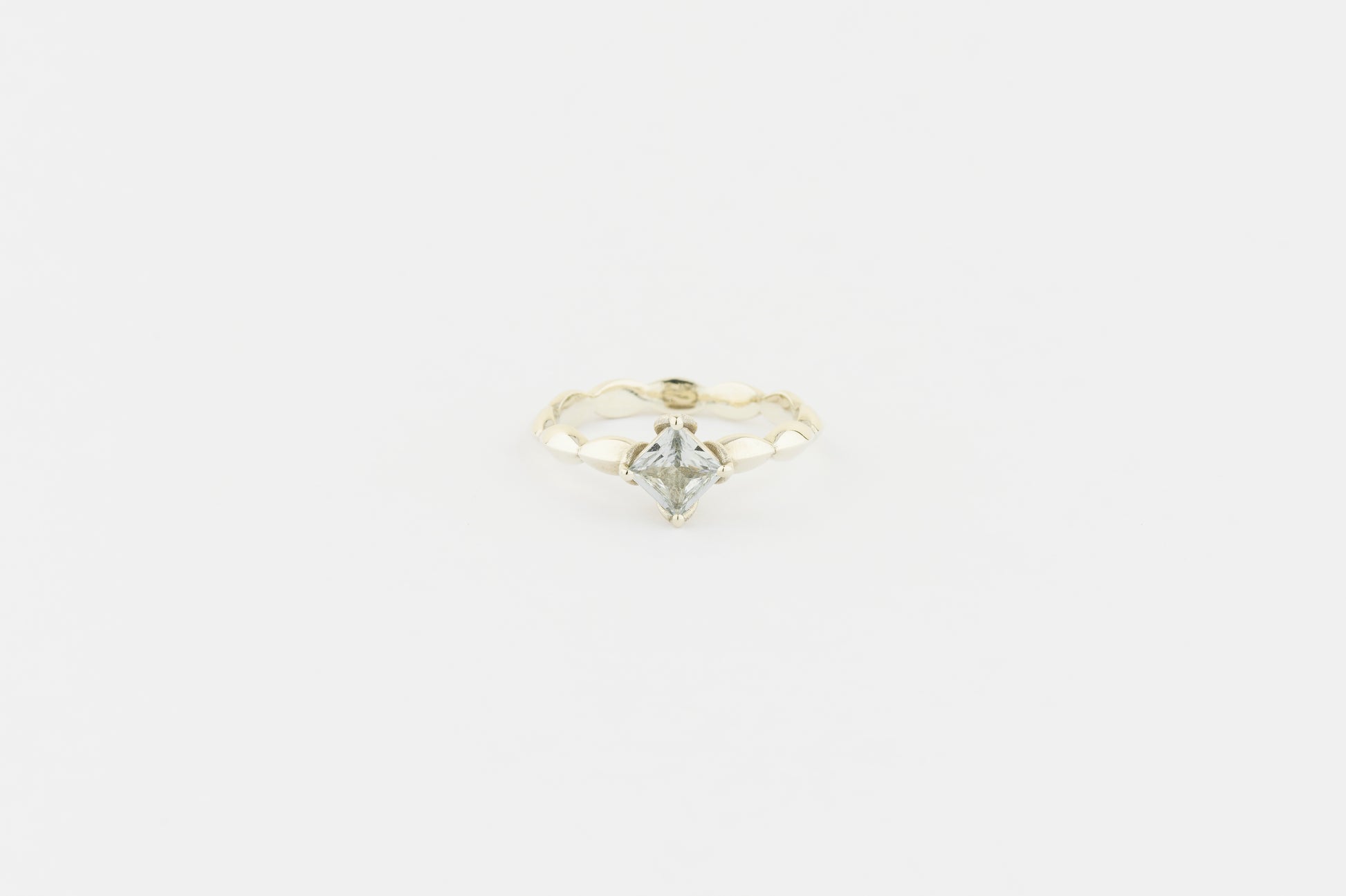 The beautiful decorative shank and square stone add a contemporary touch, blending modern elegance with classic romance.