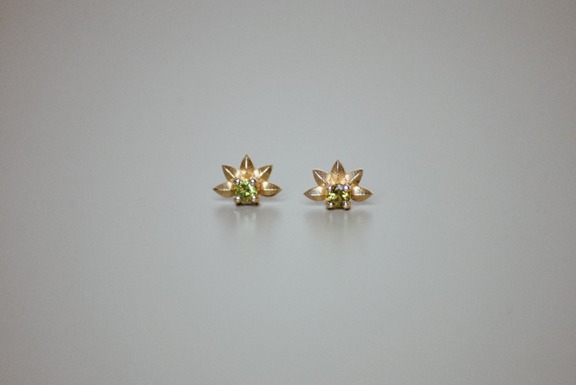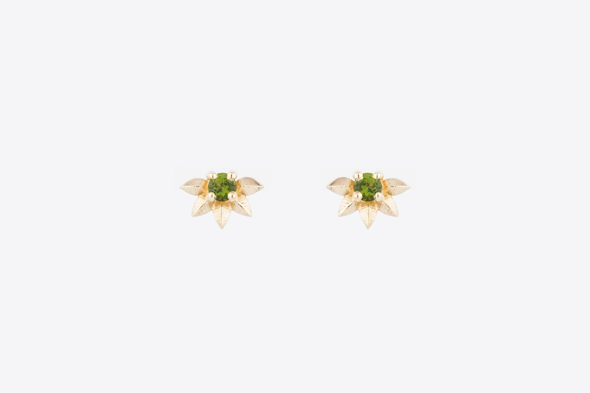 Introducing our enchanting Endearment Earrings, a captivating addition to our Valentine's drop, designed to enchant and express the depth of your affection. Crafted from delicate 9ct yellow gold these stud earrings feature exquisite green tourmalines, gracefully framed by petal shapes that lovingly embrace half of each stone.
