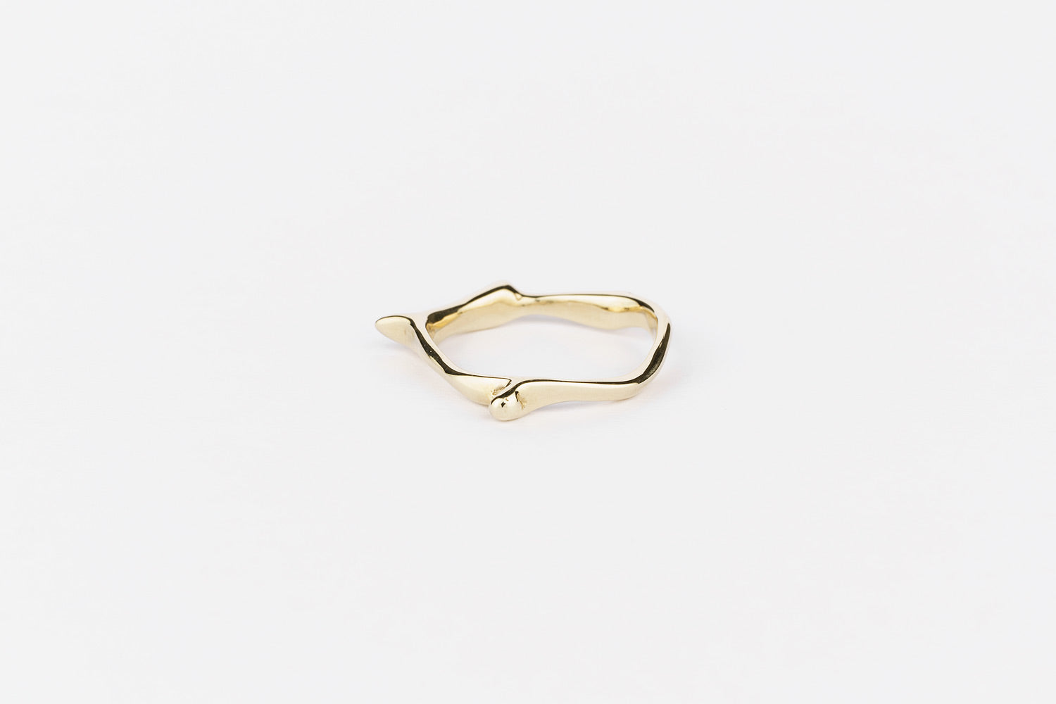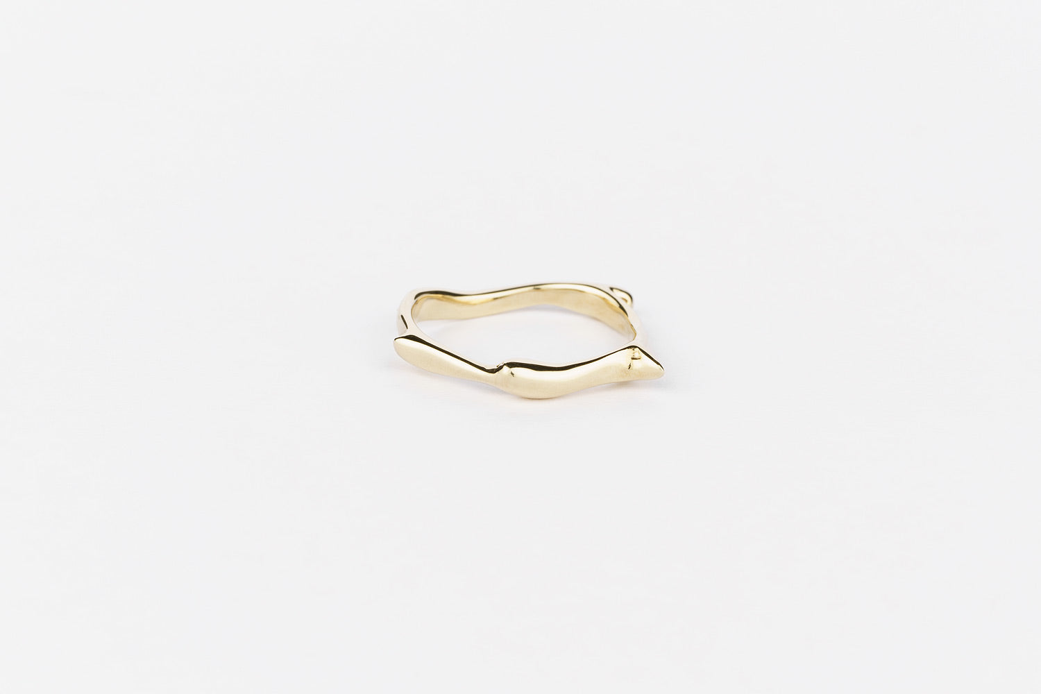 The Gild ring is organic and refined. Our handcarved details are complimented by the highly polished finish. Its natural form can compliment and shape and engagement ring.